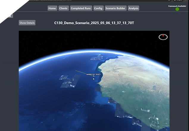 The Framework User Interface (FUI) is a modern, web-based application designed to provide seamless interaction with the MDO AF environment directly through a standard browser. It offers users intuitive controls for initiating, monitoring, and managing simulation runs, making complex scenario orchestration accessible and efficient. Whether overseeing a test campaign or analyzing system-of-systems interactions, the FUI serves as a mission-critical tool for simulation control, situational awareness, and decision support.